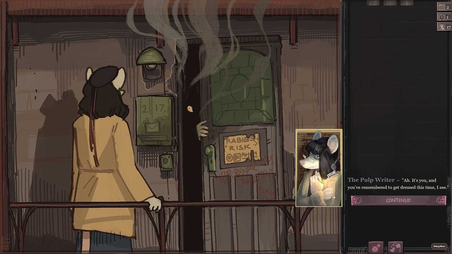 This has come recommended from a number of people I follow and they all mention Disco Elysium as a touchstone so I’m looking forward to seeing how that manifests in this story.